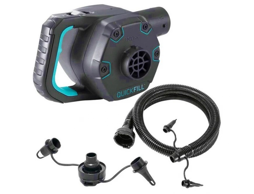 В комплекте имеется гофрированный шланг-удлинитель с 3-мя насадками-переходниками разного диаметра для различных надувных изделий.