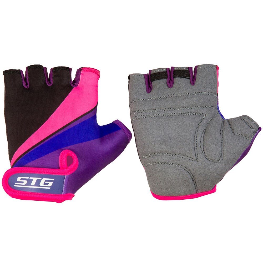 Велоперчатки STG мод. 909 быстросъемные с защитной прокладкой фиолетовые/черные/розовые размер XC